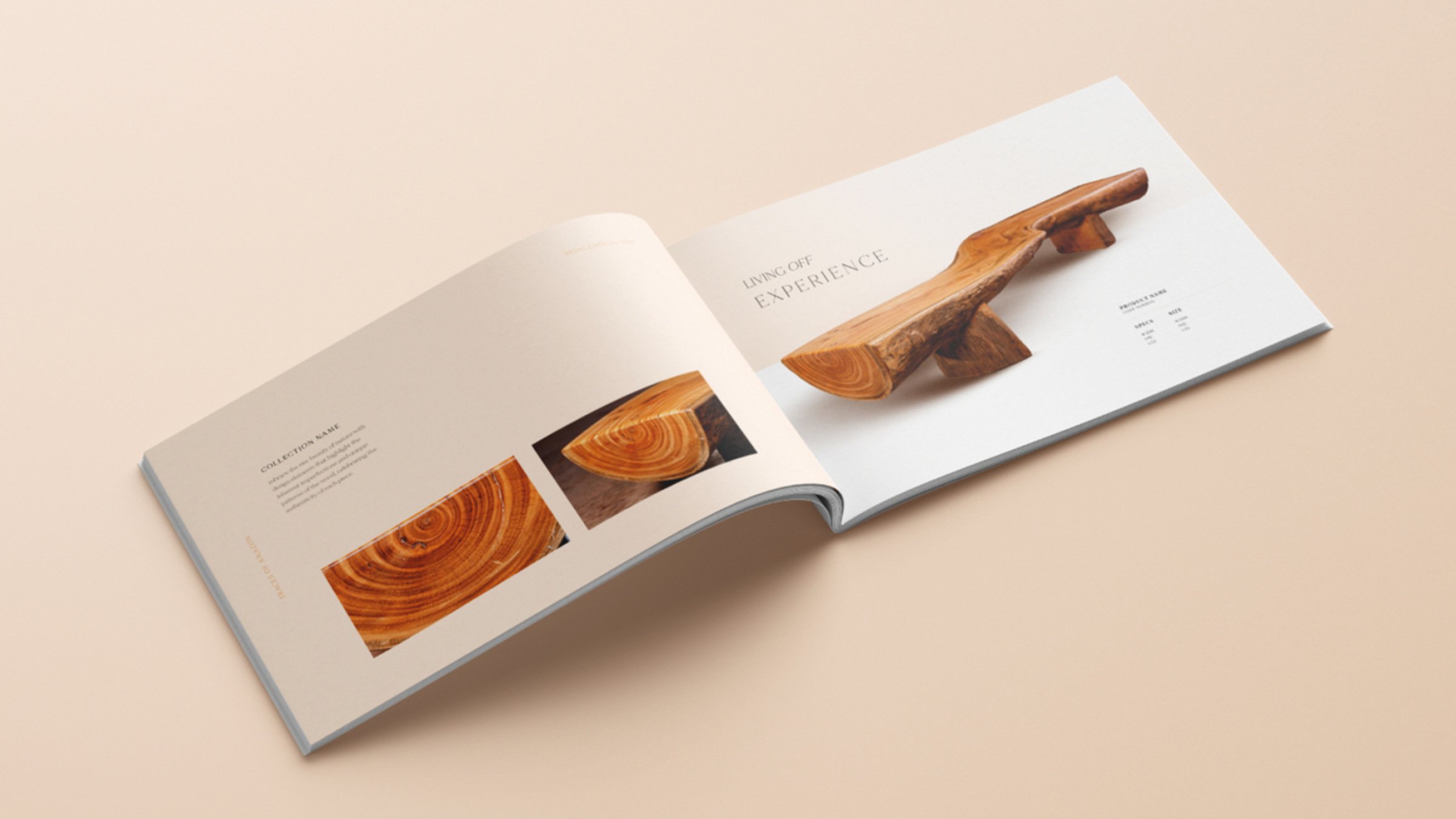 O catálogo foi desenvolvido em um tamanho personalizado para tornar os produtos visualmente atraentes quando impressos, além de contar com um acabamento em verniz UV localizado, o que torna o catálogo ainda mais consistente com seu conceito.